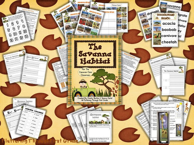 We launched into our Open House unit this week and the kids were in heaven. Our team uses Africa as a foundation for presenting all of the habitats. This week was all about grasslands. I happened to come across the BEST habitat packs from Fluttering Through First. From photo vocab cards and games to mini books and writing templates, this collection proved to be just what I needed to fill all of my habitat holes!