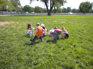 Here are some shots of my class hunting eggs last year. I host the easiest hunt around (thanks Mr. Brown . . . he came up with it years ago and it has become a bit of an Evergreen Elementary School tradition). It has 3 simple steps.